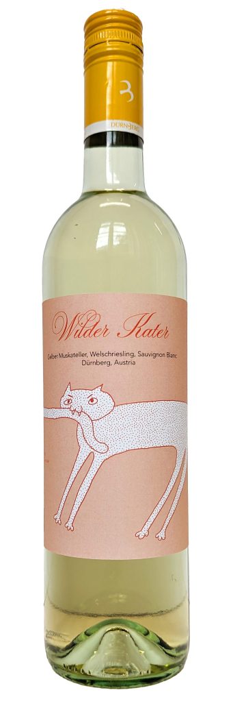 Für jede der vier unterschiedlichen Weine wurde ein anderer Kater illustriert, der einmal um die Flasche herum geht und sich selbst in den Schwanz beißt.